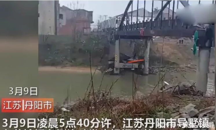 江苏省丹阳市一条人车往来的桥梁,周二(9日)清晨突然坍塌,造成2人死亡,3人受伤。
